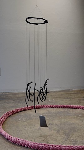 cotton rope, charcoal monoprints, vine charcoal, sewing thread, carbon copy paper